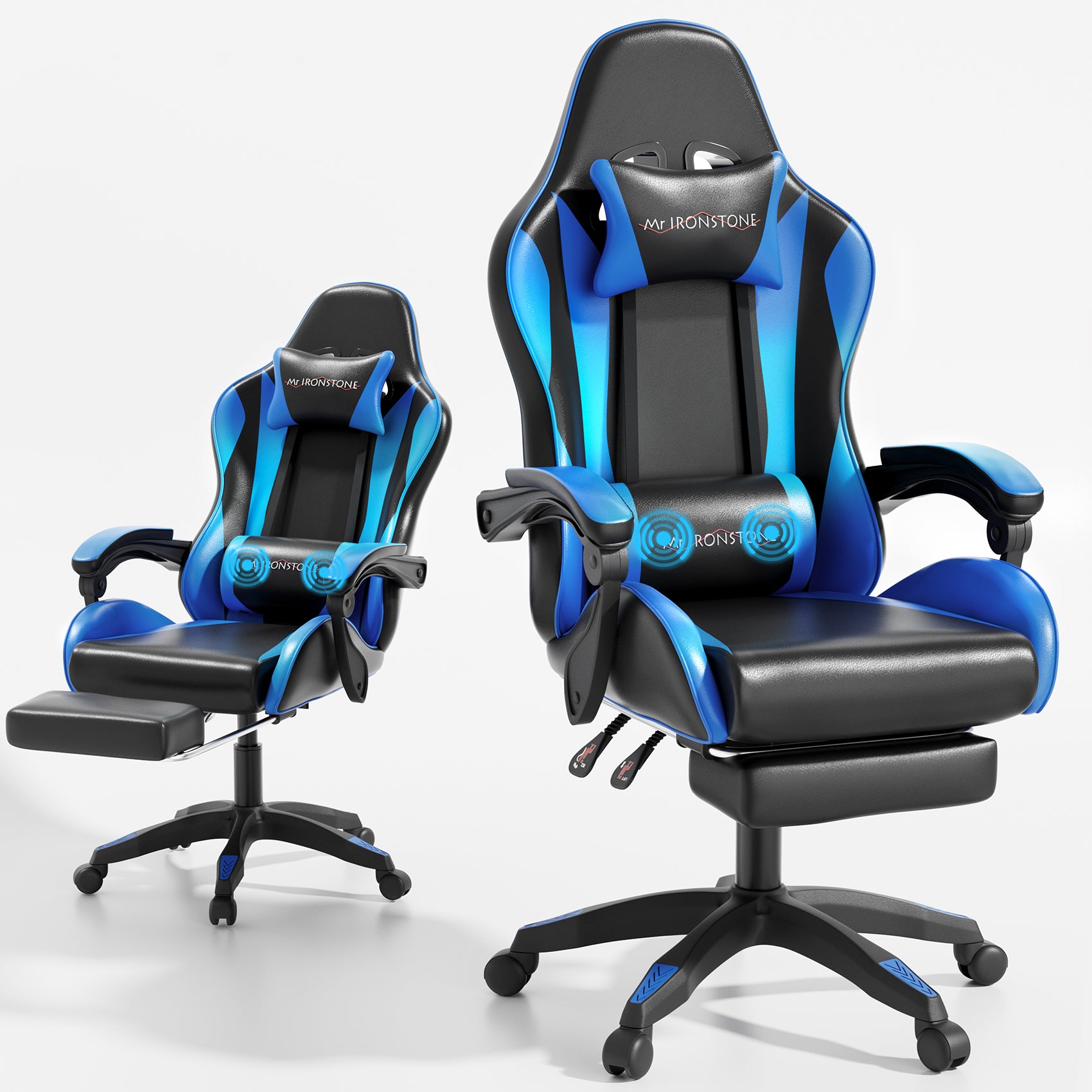 Mr IRONSTONE Gaming Chair with Speakers & LED Lights, Ergonomic Massage Office Chair with Footrest, 4D Armrests - Blue